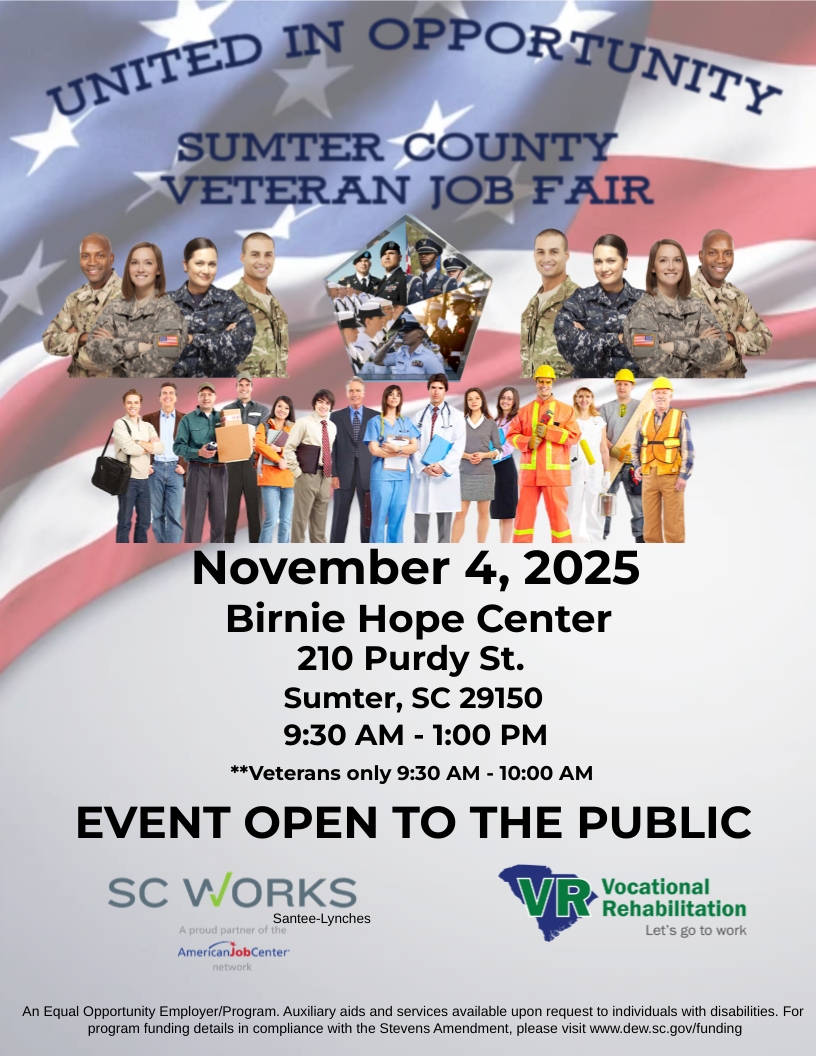 Early Closures on Thursday, October 16, 2025: Berkeley and Charleston SC Works centers will close at noon. Charleston SC Works Center will close at 2 p.m. All three centers will reopen on Friday, October 17, 2025, at 8:30 a.m.
